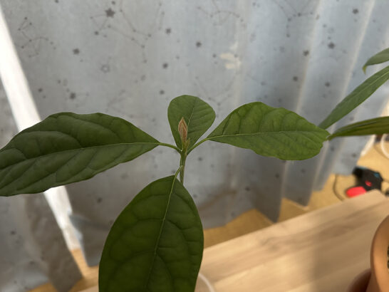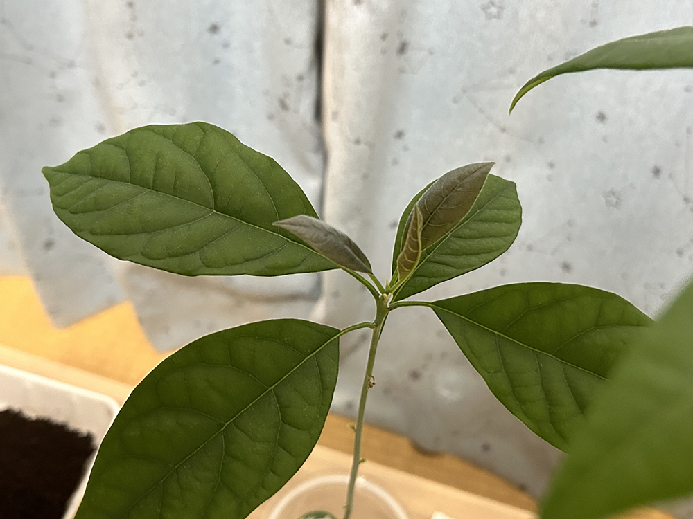 先日の大きな葉っぱがさらに少しだけ大きくなった、と思っていたらまた新たに葉が生えてきていました。